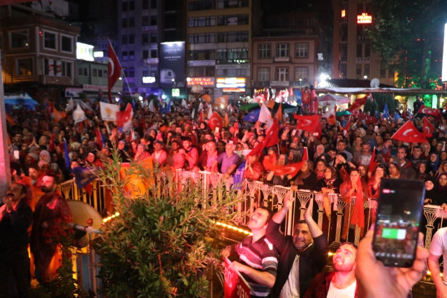 Memişağa Tuzcuoğlu Parkı’nda vatandaşlar yağmura rağmen ellerinde Türk bayrakları ile toplandı, parti otobüsünden çalınan AK Parti şarkılarına eşlik etti. Kemençe eşliğinde horon oynayan vatandaşlar Erdoğan lehine sloganlar attı. Araçları ile medyan çevresinde tur atan vatandaşlar kutlamalara eşlik etti. Havai fişek ve maytap atılana alanda yağmurdan ıslananlara yağmurluk dağıtıldı. Rize milletvekili seçilen AK Parti Genel Başkan Yardımcısı Hayati Yazıcı, Gençlik ve Spor Bakanı Osman Aşkın Bak, ve Muhammed Avcı alana geldi, vatandaşlar selamladı.