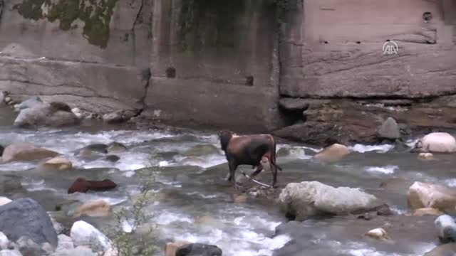 Rize’de Kurbanlık Boğa Dereye Düştü
